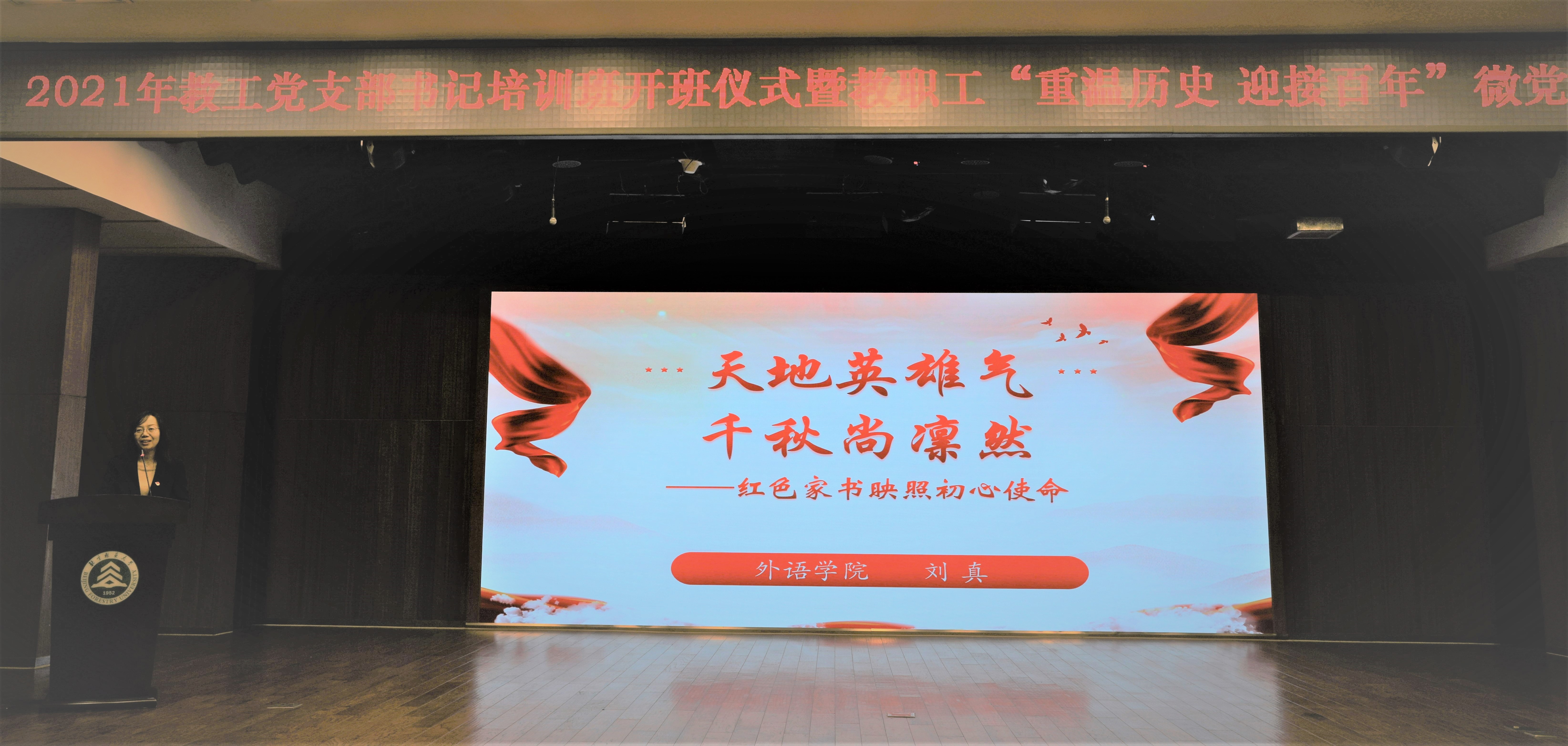 刘真的微党课聚焦四封写于不同历史时期的红色家书,带领大家品悟共产党人的坚定信仰,感受共产党人的初心使命,汲取共产党人的精神力量。前两封家书来自战火纷飞的革命年代,分别是张朝燮写给妻子王经燕的“两地书”和赵一曼写给儿子的“示儿书”。后两封家书记述了社会主义新时代两位共产党员在各自岗位上的初心故事,分别是抗疫战士赵春光的“潇湘家书”和扶贫战士余永流的“呈公主殿下书”。这些饱蘸浓情书写,读来让人荡气回肠的红色家书,彰显着无数革命先烈和时代先锋为实现民族复兴和人民幸福的历史使命不惜抛头颅洒热血的广阔胸襟和浩然正气,激励我们立足外语教师岗位,努力践行为党育人、为国育才的初心使命,培养更多具有家国情怀、全球视野、专业本领的复合型人才。
