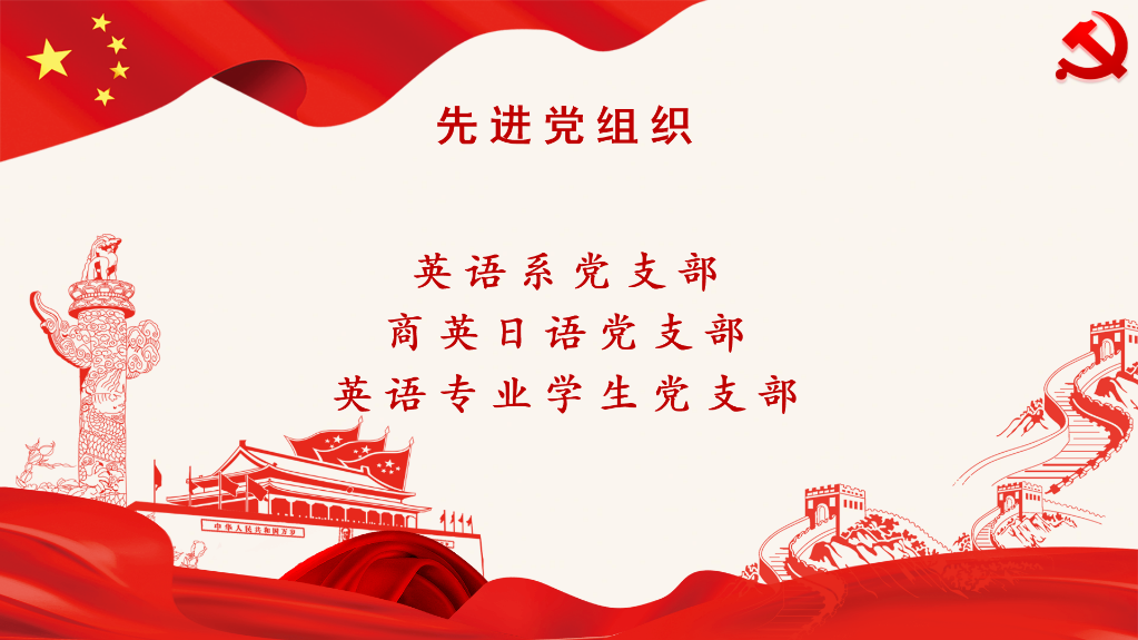 根据学校党委关于开展2022年度“两优一先”评选表彰工作的部署安排,经各党支部推荐、院党委会研究、院内公示,决定授予冯强、刘真、余洋洋、陈宇、娄瑞娟五位同志“优秀共产党员”称号,授予马潇、白雪莲、武立红三位同志“优秀党务工作者”称号,授予英语系党支部、商英日语党支部、英语专业学生党支部“先进党组织”称号。会上,对上述优秀个人和先进集体进行了隆重表彰。