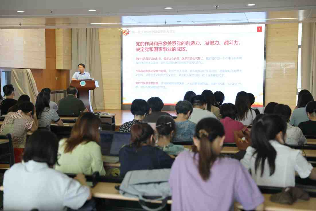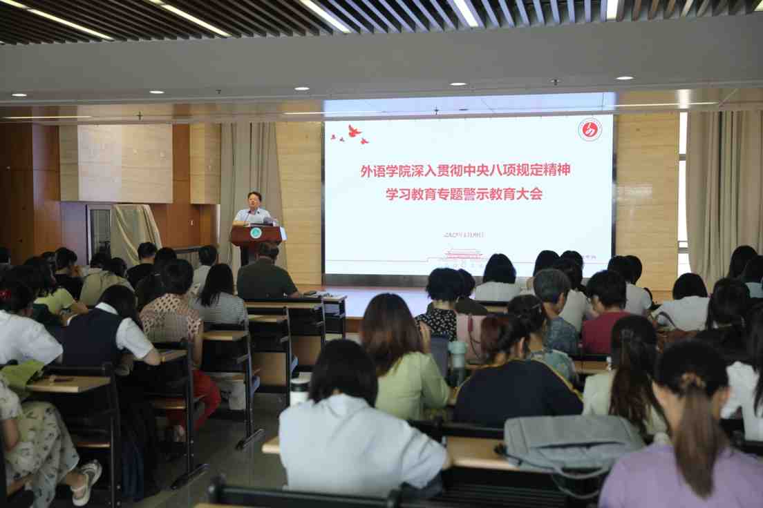雷韶华指出,2025年是中国共产党成立104周年,我们党自成立以来,始终重视作风建设,在长期实践中培育并坚持发扬党的优良作风。我们要以深入贯彻中央八项规定精神学习教育和学校“作风建设年”为重要契机,抓好学院作风建设,以作风建设新成效赢得学院师生的信任和支持,营造学院风清气正的政治生态和育人环境,为推进学院事业高质量发展提供坚强保障。他希望,学院师生党员严格自律,主动作为,充分发挥共产党员先锋模范作用。师生党支部向先进基层党组织学习,加强支部工作标准化规范化建设,推进学院党建工作质量整体提升。他表示,全院教职工要充分认识当前外语类学院面临的专业调整及数智化浪潮双重挑战,直面问题,抓住机遇,主动破局,凝心聚力,共同为开创学院事业发展新局面贡献力量。