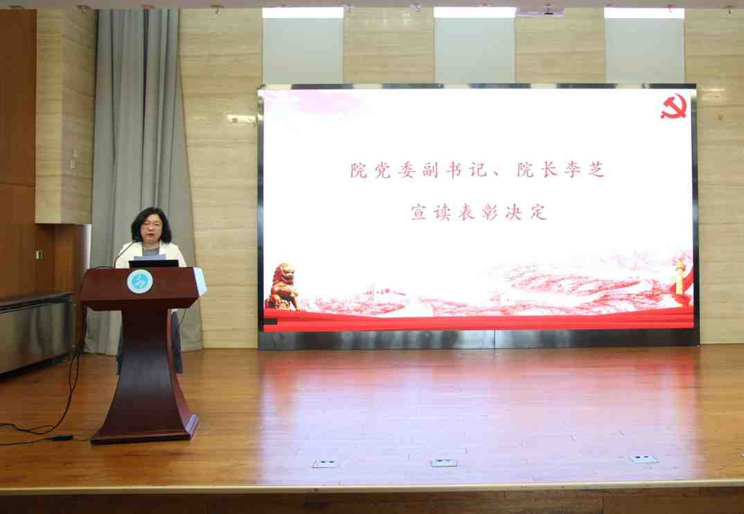 李芝在宣读表彰决定时表示,根据学院党委关于开展2025年度“两优一先”评选表彰工作的安排,经各基层党支部推荐、院党委委员会研究并投票、院内公示,决定授予王艺璇、冯强、刘玮、刘晓曦、张帆、赵红梅、龚锐、魏萍8位同志“优秀共产党员”荣誉称号,授予由华、刘真、祝葵3位同志“优秀党务工作者”荣誉称号,授予公外第二党支部、英语专业学生党支部“先进基层党组织”荣誉称号。王雪梅同志被评为校级“优秀共产党员”,武立红同志被评为校级“优秀党务工作者”,商英日语党支部被评为校级“先进基层党组织”,也一并提出表彰。她希望,受到表彰的先进集体和优秀个人珍惜荣誉、践行使命,砥砺奋进、再创佳绩,为推动学院事业高质量发展而共同努力奋斗。