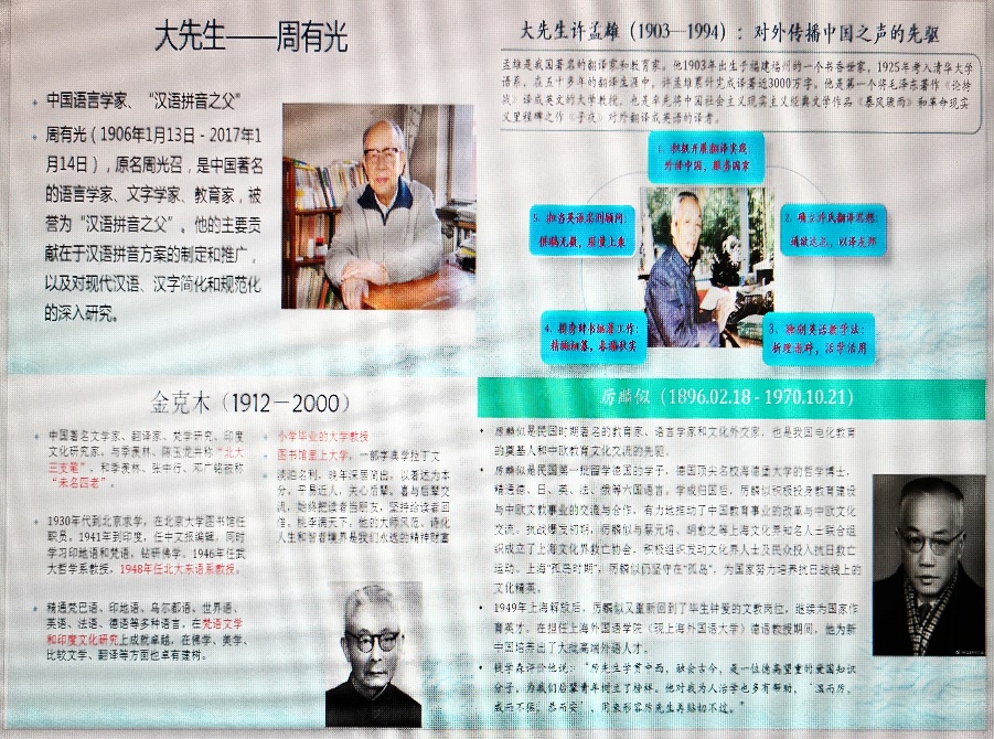 会上,还开展了庆“七一”“弘扬尊师重教良好风尚”专题微党课宣讲活动,英语系每位教师宣讲一位教育家和大先生的生平事迹,其中包括孔子、严复、蔡元培、周有光、许孟雄、陈寅恪、厉麟似、金克木、于漪等共9位,旨在促进大家向教育家和大先生学习,践行教育家精神,更好履行教书育人职责使命。