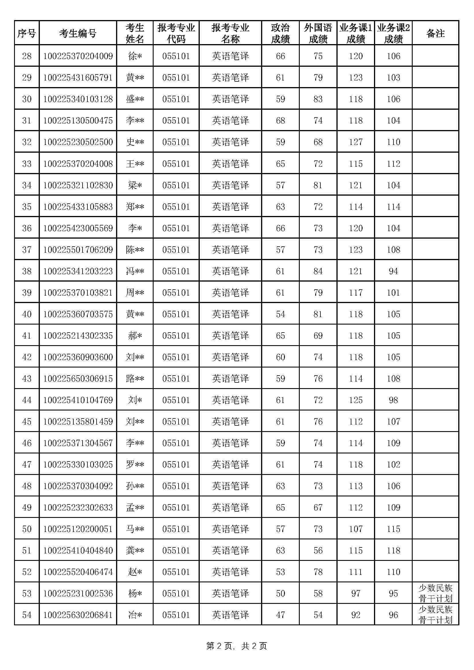 外语学院2025年硕士研究生招生考试复试名单(一志愿)