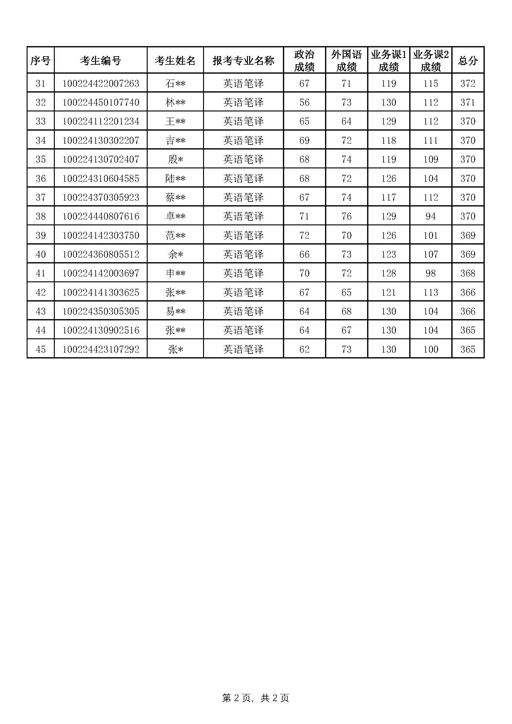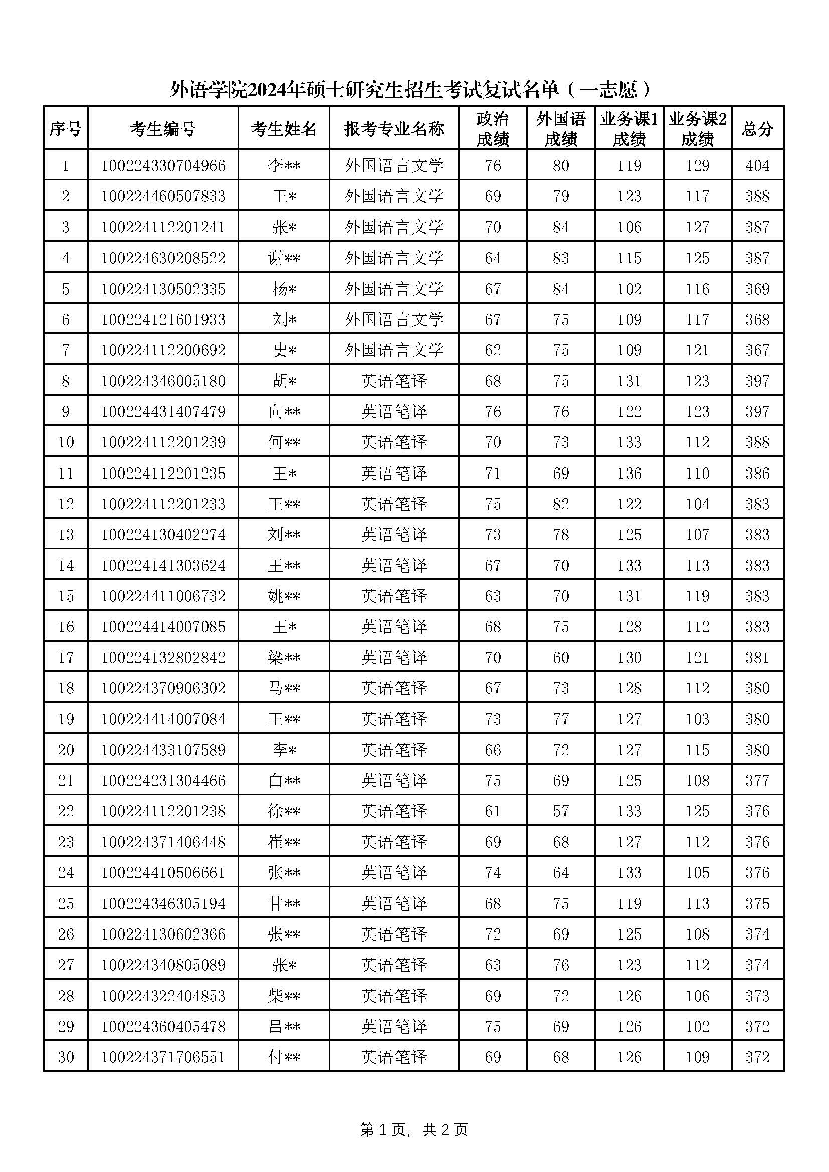 外语学院2024年硕士研究生招生考试复试成绩及入学总成绩公示(一志愿)