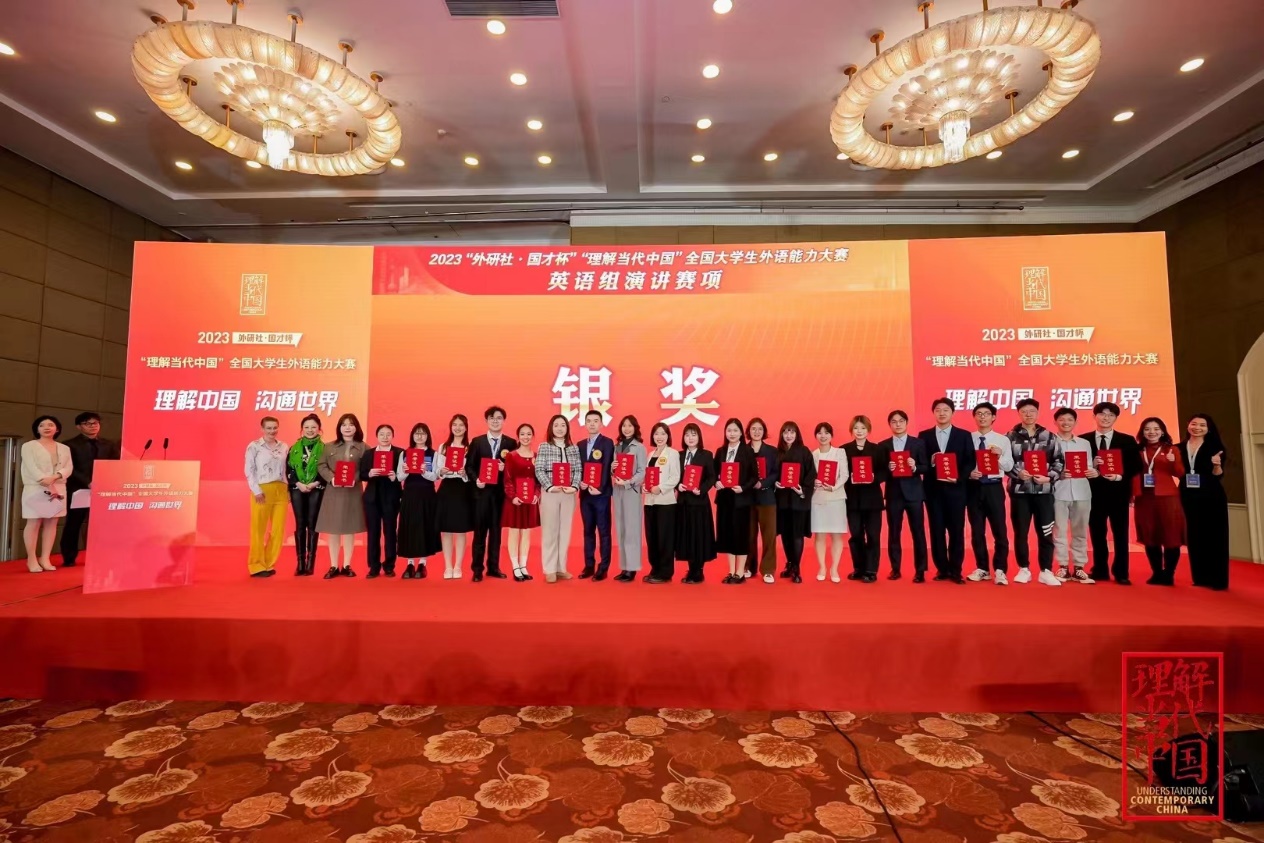 近日,2023“外研社·国才杯”“理解当代中国”全国大学生外语能力大赛(英语组)演讲赛项全国决赛在北京举办,来自全国各地的500多名优秀选手竞展风采。经过激烈角逐,我校商务英语专业2022级章乐孜(指导教师:刘玮)和城规专业2023级胡雅平(指导教师:白雪莲)分获银奖、铜奖。