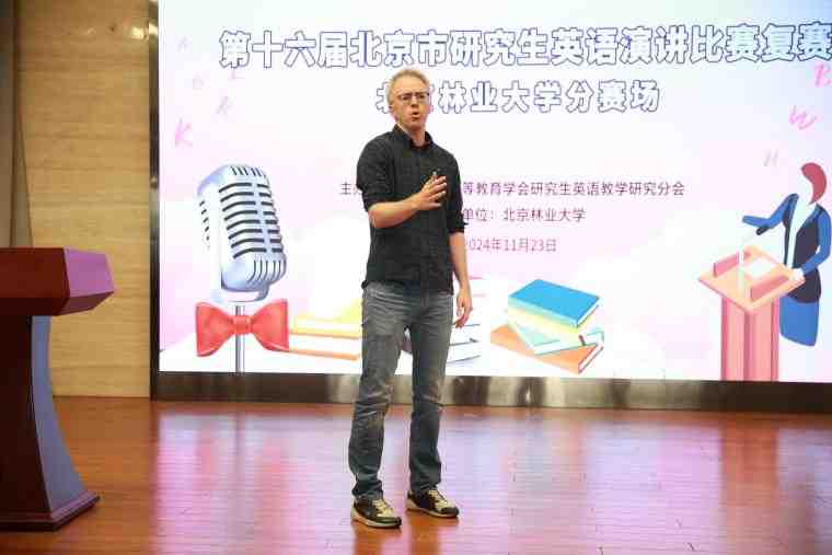11月23日,由分赛场北京林业大学外语学院承办的第十六届北京市研究生英语演讲比赛复赛圆满落幕。本次演讲比赛的题目为“AI in Higher Education”。本次比赛共有38名来自不同高校的优秀选手参加,由军事科学院鲁显生教授、清华大学张英教授、北京科技大学卢超教授、北京林业大学李芝教授、刘真副教授和马平副教授担任评委,外籍教师Ben和Louisa担任提问嘉宾。