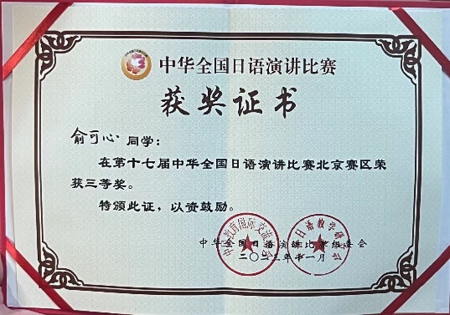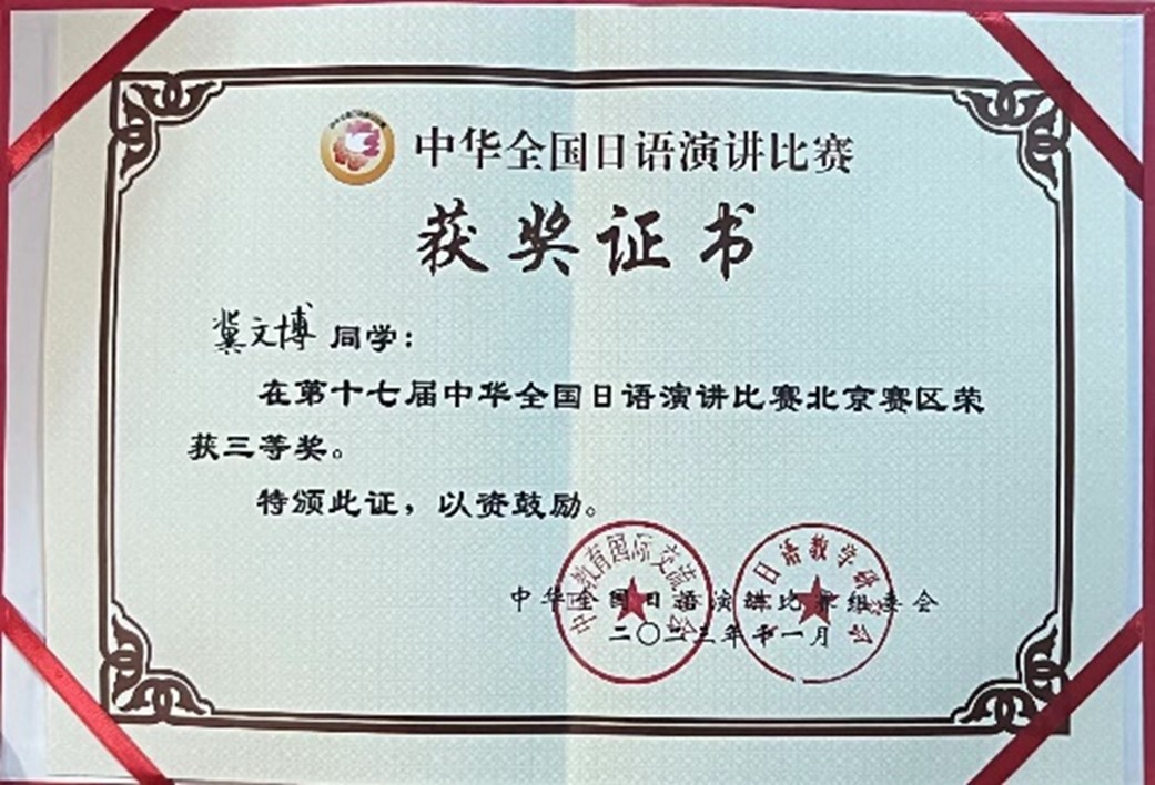外语学院学生喜获中华全国日语演讲比赛北京赛区三等奖