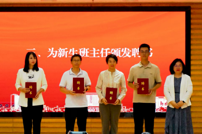 会上,李芝向新生班主任颁发聘书,行政副院长马俊向班主任助理和学业辅导员颁发聘书。