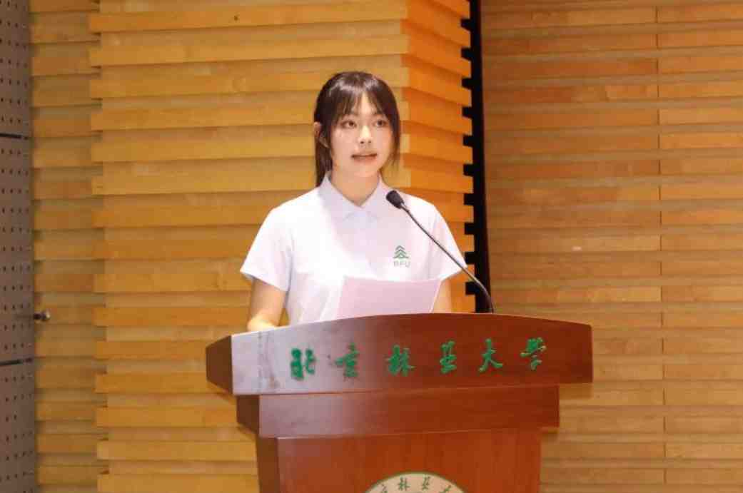 英语25-2班王曦婕和硕外25班张赛婵分别作为本科生新生代表、研究生新生代表发言。她们分享了自己初入北林的欣喜,并向全体新生发出倡议,作为新时代青年,要把握当下,将所学知识应用到实际中,不断探索、不断前行,奏响时代的奋进乐章。