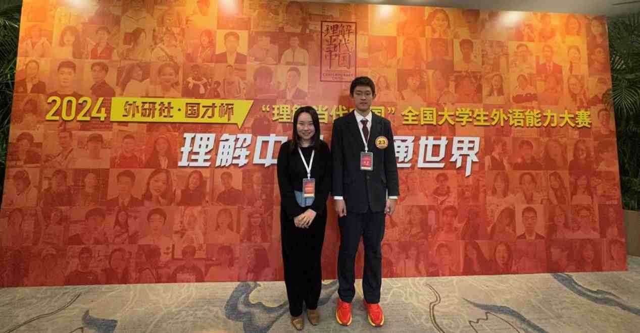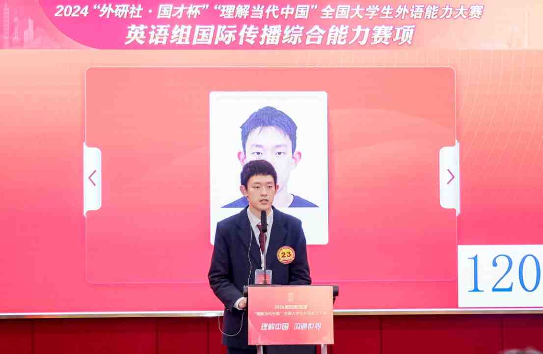 近日,2024“外研社·国才杯”“理解当代中国”全国大学生外语能力大赛国际传播综合能力赛项全国总决赛在北京举办,我院2023级商英系刘匡迪同学在激烈的竞争中脱颖而出,荣获全国金奖,指导教师为外语学院余洋洋。