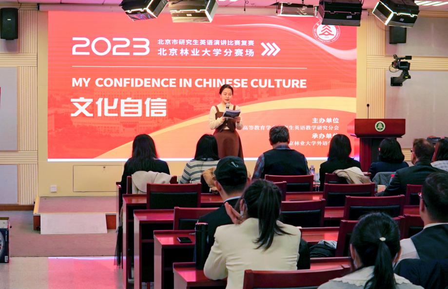 11月26日,2023年北京市研究生英语演讲比赛复赛在我校学研中心举行。本次比赛由北京市高等教育学会研究生英语教学研究分会主办,共有清华大学、中国政法大学、北京林业大学三个分赛场。