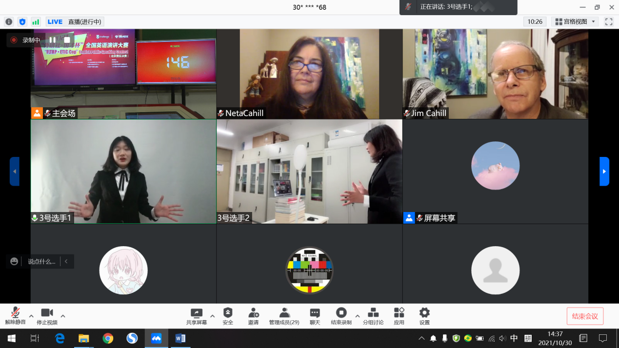 下午进行的选拔赛分为定题演讲、即兴演讲和回答问题三个环节。选手们分别就定题演讲题目“Red Star Over China”和线上抽选到的即兴演讲题目进行3分钟的阐述,随后回答两名外教的提问。比赛精彩纷呈,选手反应敏捷,从容应对,充分展现了北京高校大学生的风采。