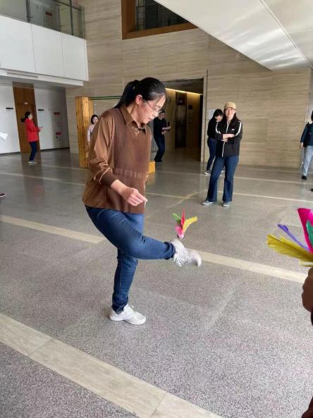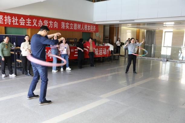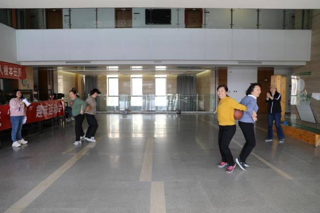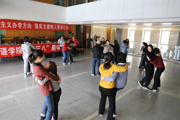 为庆祝“三八”妇女节,在学院党政的支持下,外语学院工会举办了庆“三八”趣味运动会。趣味运动会共设有7个项目——踢毽子接力、两人三足、半分钟跳绳、运球接力、双人背夹篮球、喊数抱团和转呼啦圈。各组老师大显身手,默契配合,齐心协力,奋勇争先。场边的观众更是加油声和欢呼声此起彼伏。各位女教职工秉承“友谊第一、比赛第二”的体育道德风尚,在拼搏中展现了“妇女能顶半边天”的别样风采和“巾帼不让须眉”的时代气息。