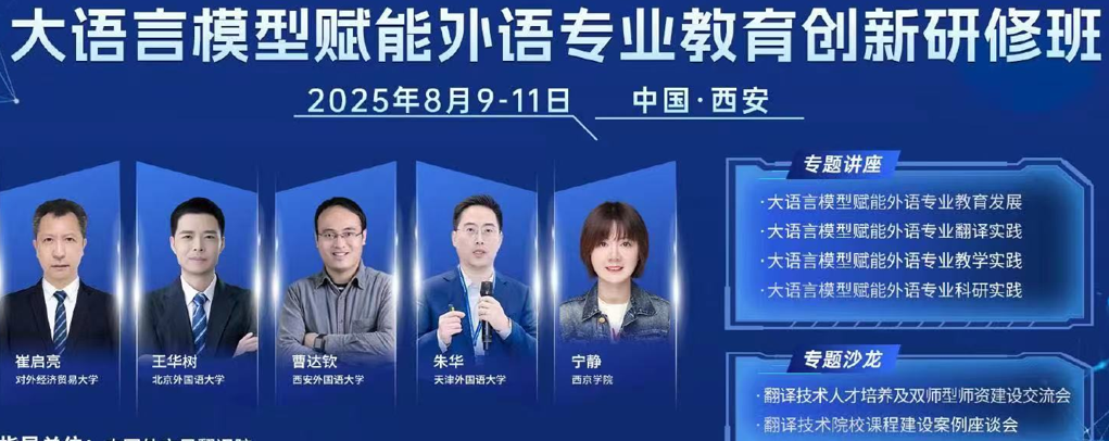 此次研修活动由中国外文局翻译院指导,国内多所高校及语言服务企业联合主办,长安大学外国语学院承办。研修聚焦前沿技术与外语教学的融合实践,旨在帮助外语教师系统掌握大语言模型应用技术,实现“外语+AI”复合教学能力的进阶跃升,为外语专业教育在数字化浪潮中突破创新、高质量发展注入动力。