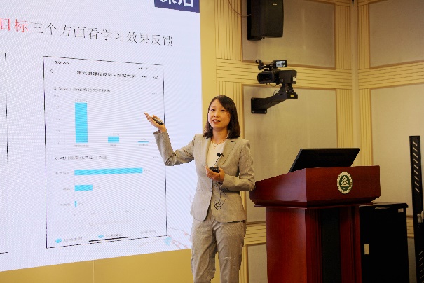 李芝院长在总结发言中充分肯定了参赛选手的优秀表现。她指出,比赛整体呈现非常精彩,体现了外语学院教师扎实的语言基本功和良好的精神风貌。老师们有意识地在课程当中融入了文化内涵和价值理念,融合了语言教学和育人价值目标,教学思路清晰,理论与实践相辅相成。她强调,英语教师应当具备育人、学科、教学、信息和科研五个方面的素养,教学设计要遵循教、学、评一体化的理念和原则,从语言、智力和认知层面提升课程的挑战度;在课程思政的理解上打开思路,把课程思政以润物细无声的方式融入到课堂教学中。她指出,教师要积极参加教学观摩,通过观摩参赛选手的授课来反思自己教学过程中的不足,要以科研的素养来反哺教学,通过行动研究反思自己的教学过程如何提高,努力做到教学相长。