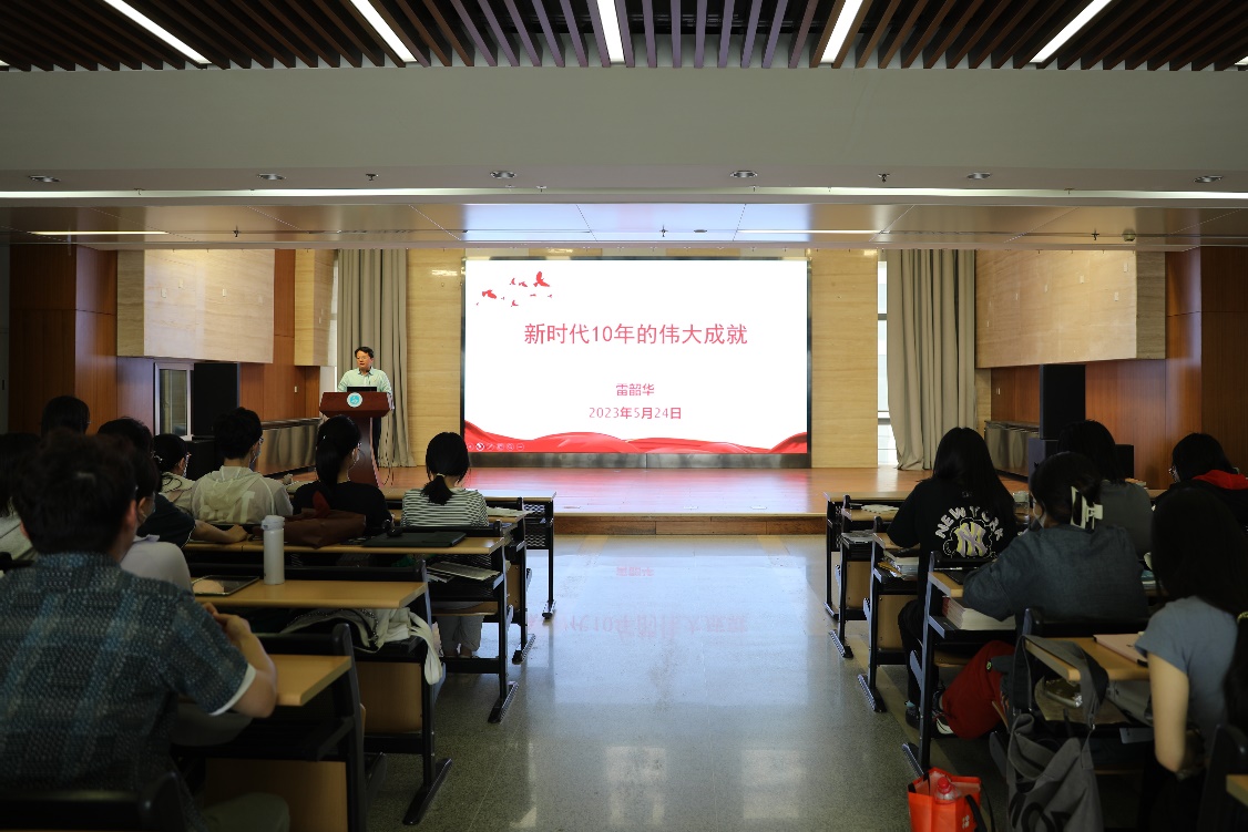 根据主题教育讲授专题党课和宣讲新时代十年的伟大成就的工作要求,5月24日,院党委书记雷韶华向全院学生党员讲授《新时代十年的伟大成就》专题党课。