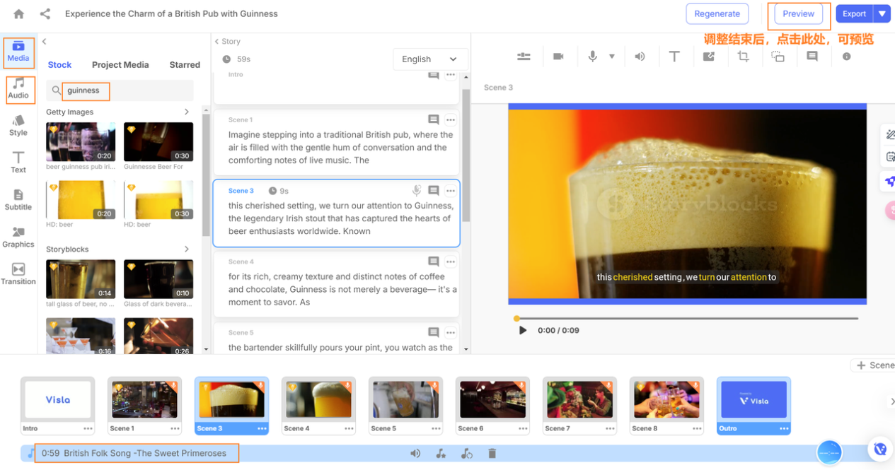 案例3:如何使用AI生成一段关于爱尔兰特色啤酒“guinness”的介绍视频,让学生更直观地了解英国的酒吧文化?