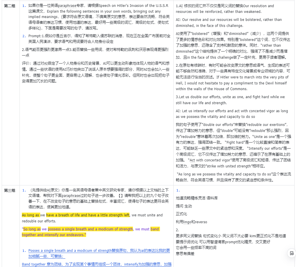 第二阶段:培养批判思维。使用AI工具修改作业并进行人机版本对比分析,深入探讨AI的优势与局限。