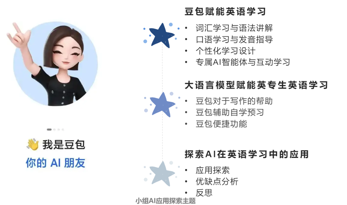 第三阶段:促进协作学习。组织小组讨论分享案例,拓展AI工具的使用思路,丰富智能辅助学习体验。