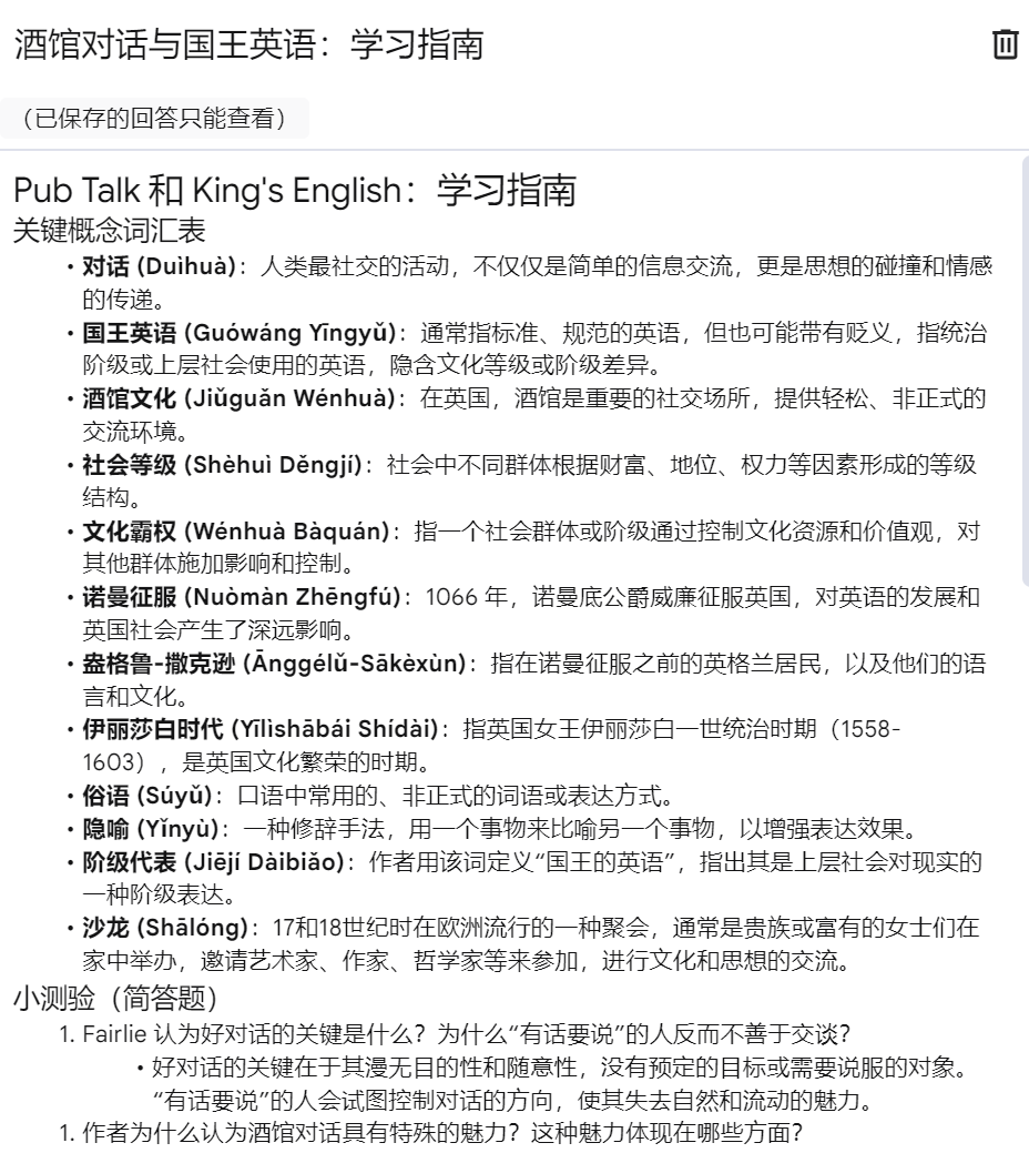 案例4:如何迅速将课文内容生成英文播客,并提供内容大纲和学习指南?