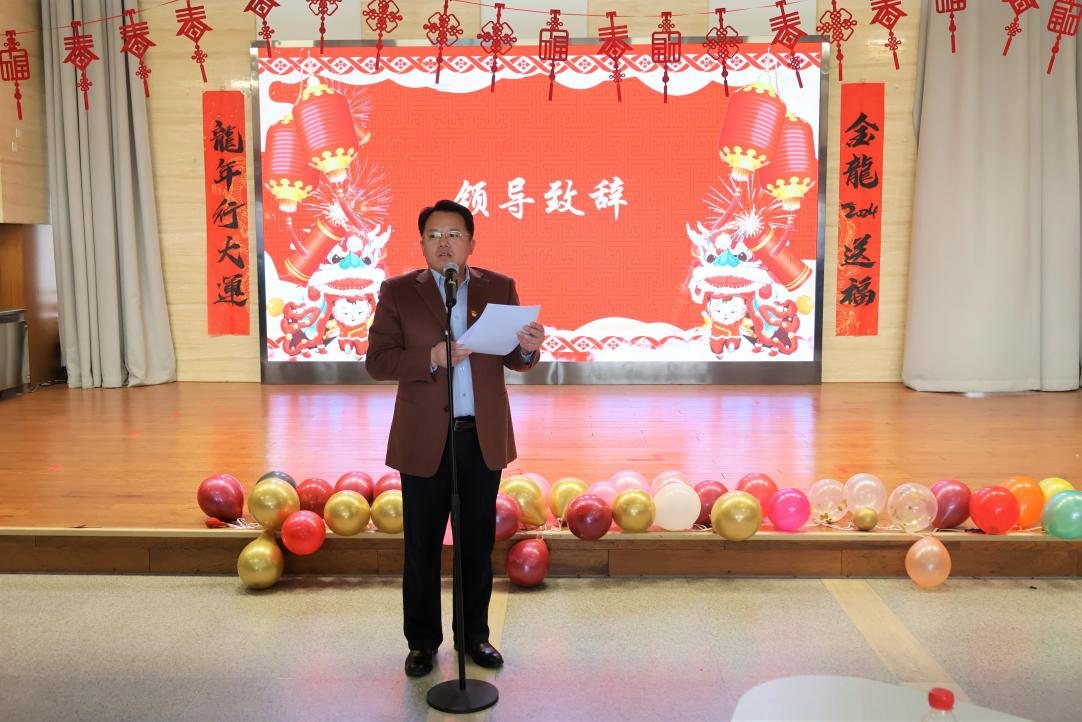院党委书记雷韶华发表热情洋溢的新年贺词,拉开了新年游艺会的序幕。雷韶华总结了2023年学院事业发展取得的成绩,展望了2024年学院发展前景和重点工作,并代表学院对全院教职工的辛勤付出表示衷心感谢,向全院教职工、退休老同志致以诚挚问候和美好祝愿。