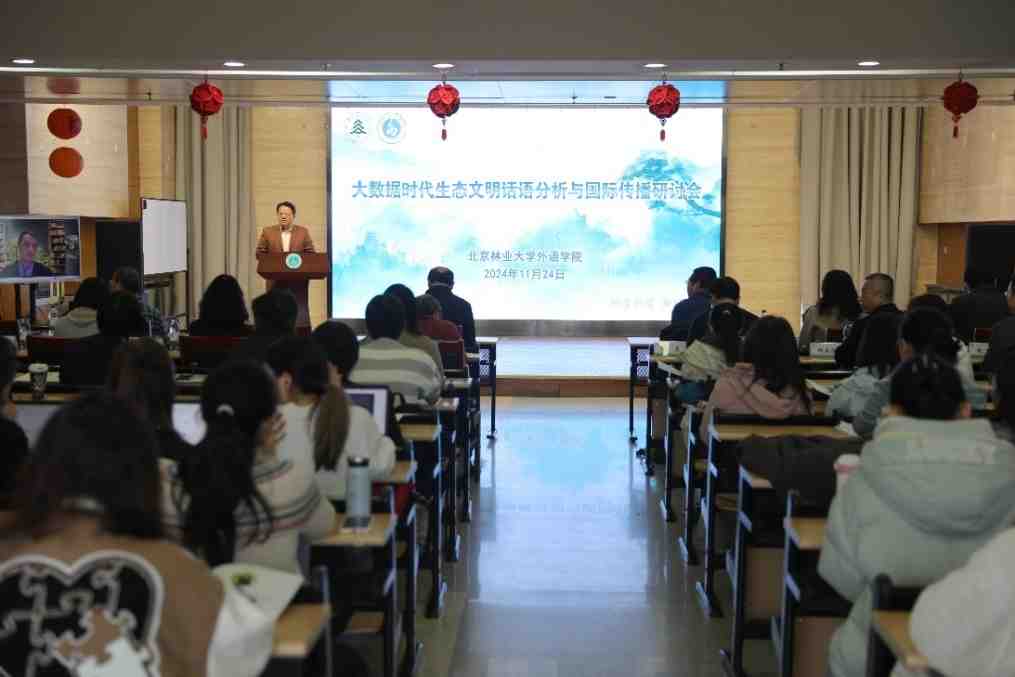 11月24日,大数据时代生态文明话语分析与国际传播研讨会在北京林业大学外语学院成功举办。校党委常委、副校长张志强出席开幕式并发表讲话。来自国内外知名高校和语言服务领域企业的专家学者以及在校师生参会研讨。外语学院党委书记雷韶华主持开幕式。外语学院党委副书记、院长李芝作主旨报告并主持闭幕式。
