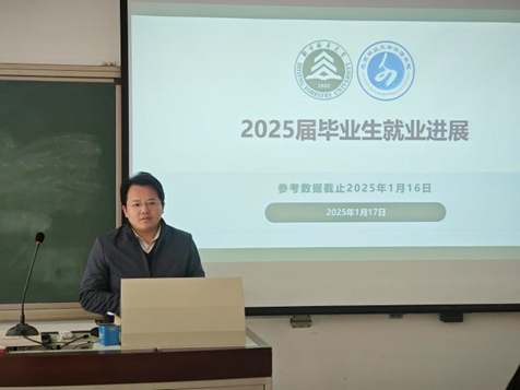 为做好2025届毕业生就业工作,全面落实全员抓就业工作机制,为下一步工作明确方向,1月17日,外语学院组织召开2025届毕业生就业工作推进会。学院领导班子成员、各系主任、毕业班班主任、辅导员参加会议。