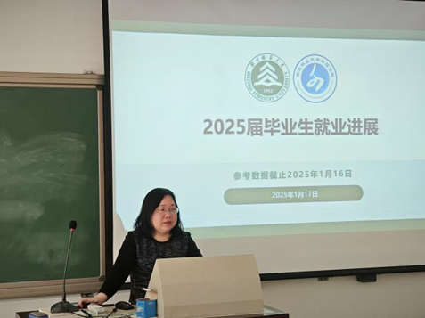 学院就业中心主任周韵对当前就业形势、2025届毕业生就业进展和下一步工作安排进行了介绍。学院将继续整合校内外资源,努力拓展就业市场,多措并举为毕业生提供就业指导帮扶,推动毕业生高质量充分就业。