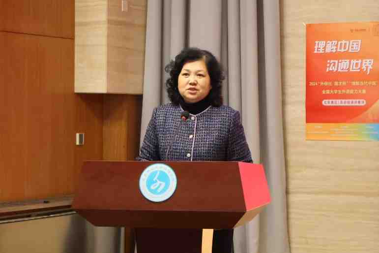 外语教学与研究出版社国际人才发展中心总经理冯涛代表大赛组委会向长期以来关心和支持大赛发展的专家表示感谢,并向成功晋级的选手及指导老师表示祝贺。她在致辞中介绍了今年大赛在深化思政教育、培养国家意识、促进国际化人才培养上的新探索,期望能够不断助力学生成长,推动外语教育的高质量发展。