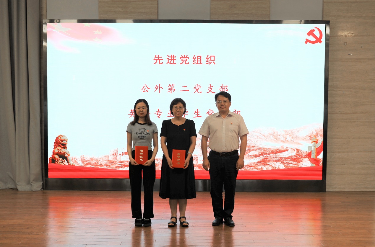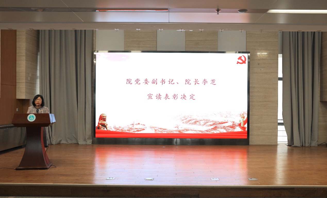 李芝在宣读表彰决定时指出,根据学院党委关于开展2023年度“两优一先”评选表彰工作的安排,经各基层党支部推荐、院党委委员会研究并投票、院内公示,决定授予田昊、刘玮、刘真、陈宇、李怡菲、武立红、赵红梅、黄娟8位同志“优秀共产党员”荣誉称号,授予马俊、白雪莲、黄佩娟3位同志“优秀党务工作者”荣誉称号,授予公外第二党支部、英语专业学生党支部“先进党组织”荣誉称号。娄瑞娟同志被评为校级“优秀共产党员”,姜玉丹同志被评为校级“优秀党务工作者”,也一并提出表彰。她希望,受到表彰的先进集体和优秀个人倍加珍惜荣誉,不忘初心、砥砺前行,以更加昂扬的精神状态,更加强烈的责任感和使命感,积极投身学院发展建设,再创佳绩。