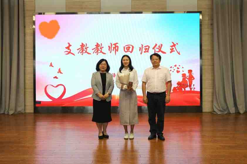 在9月10日的全院大会上,支教教师回归仪式同样温馨感人。雷韶华、李芝代表学院,向结束一年支教任务回到学院的李佳洋赠送定制笔筒、献上鲜花。李佳洋表示,一年的支教生活令她收获颇丰,她将把支教中收获的成长与感悟融入教学和科研,与同事们一起,培养更多有温度、有担当的外语人才。