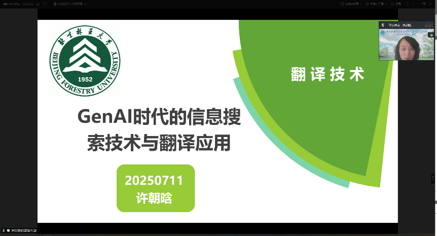 在夏令营学术活动环节,许朝晗老师以“GenAI时代的信息搜索技术与翻译应用”为题,从网络搜索、词典术语库、学术数据库、桌面搜索四个方面展开讲解,通过具体实例介绍了当今热门的信息技术资源,并鼓励同学们提高运用现代信息技术的能力,提升学术素养。