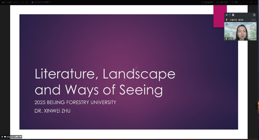 朱欣慰老师为营员们开展了“Literature, Landscape and Ways of Seeing”专题讲座。她从landscape这一概念出发,介绍景观在文学、绘画和日常生活中的多重意义,强调对文学文本的阅读需要打开视野,兼顾作品的历史语境与现实关切,为同学们提供了新思路和新视角。