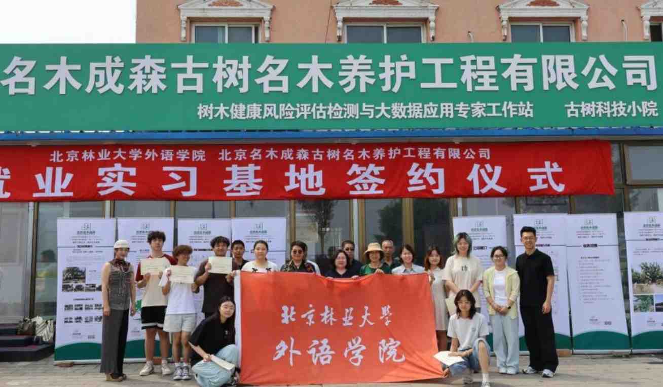 据悉,名木成森公司专注于古树复壮与养护工程技术开发,在生态文明科技创新方面与我校具有扎实的合作基础。此次共建实习基地,是外语学院深化校企合作、提升人才培养与产业需求契合度的重要举措,为学生践行绿色科技创新、国际文化传播等提供了重要契机。