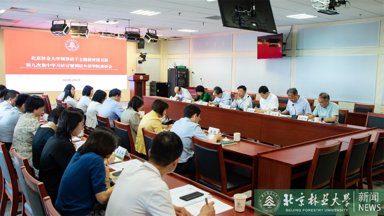 王洪元对外语学院下一步工作提出四点要求,一是加强人才队伍建设,凝聚学院发展合力。坚持引育并举,持续优化人才队伍结构,激发教师干事创业活力,坚持严管厚爱相结合,组织好教师思想政治理论学习,提振教师精气神,凝聚起推动学院发展的强大合力。二是发挥学科优势特色,服务学生成长成才。学院要进一步提高教育教学水平,围绕考研、留学、就业等学生成长发展关键环节,面向全校开展精准化外语教学,全面提升学生发展所需的语言能力。三是增强使命意识、担当意识,主动做好习近平生态文明思想国际传播。学院要以强烈的使命感、责任感做好党的创新理论对外传播,坚持守正创新、协同联动,向国际社会讲好生态文明建设中国故事,为做好习近平生态文明思想国际传播贡献北林力量。四是充分发挥党建引领作用,推动学院高质量发展。加强班子建设,突出组织引领,强化担当作为,统筹谋划人才培养、学科建设、学院治理、师德师风、就业创业等重点工作,为我校实现2035年建成中国强校目标贡献力量。