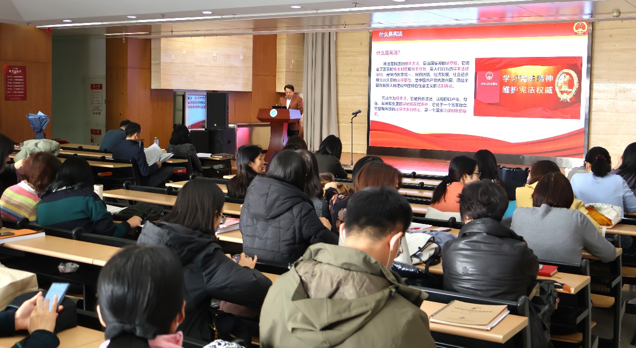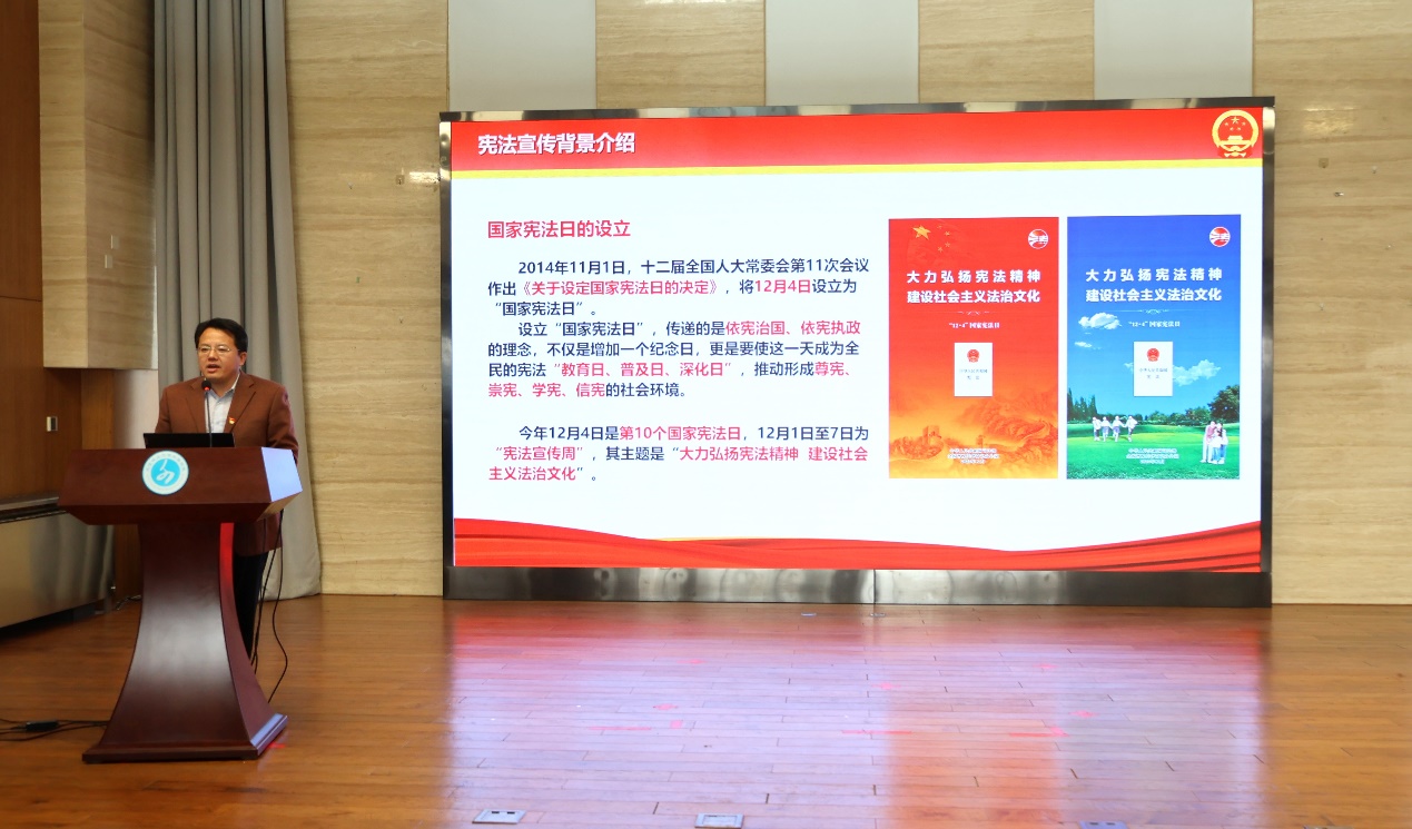 为贯彻落实习近平总书记在第十个国家宪法日之际作出的加强宪法宣传教育、普及宪法知识的重要指示精神,根据校党委关于2023年“宪法宣传周”的相关工作安排, 12月6日,院党委书记雷韶华向全院教职工讲解《大力弘扬宪法精神 建设社会主义法治文化》专题微党课,开展宪法知识专题学习。