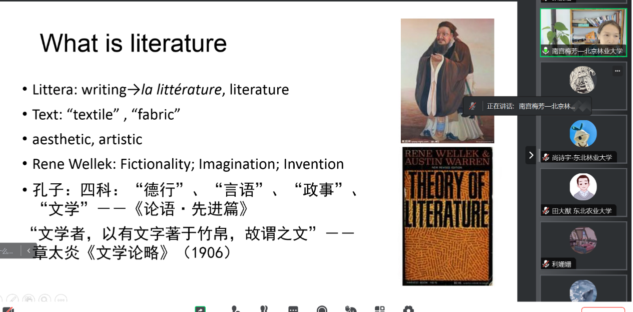 南宫梅芳教授以 “English Literature and Literary Criticism”为题,介绍了英美文学的发展历程,梳理了英美文学的研究方法,指出了英美文学的研究意义,引导营员深入思考文学批评研究。
