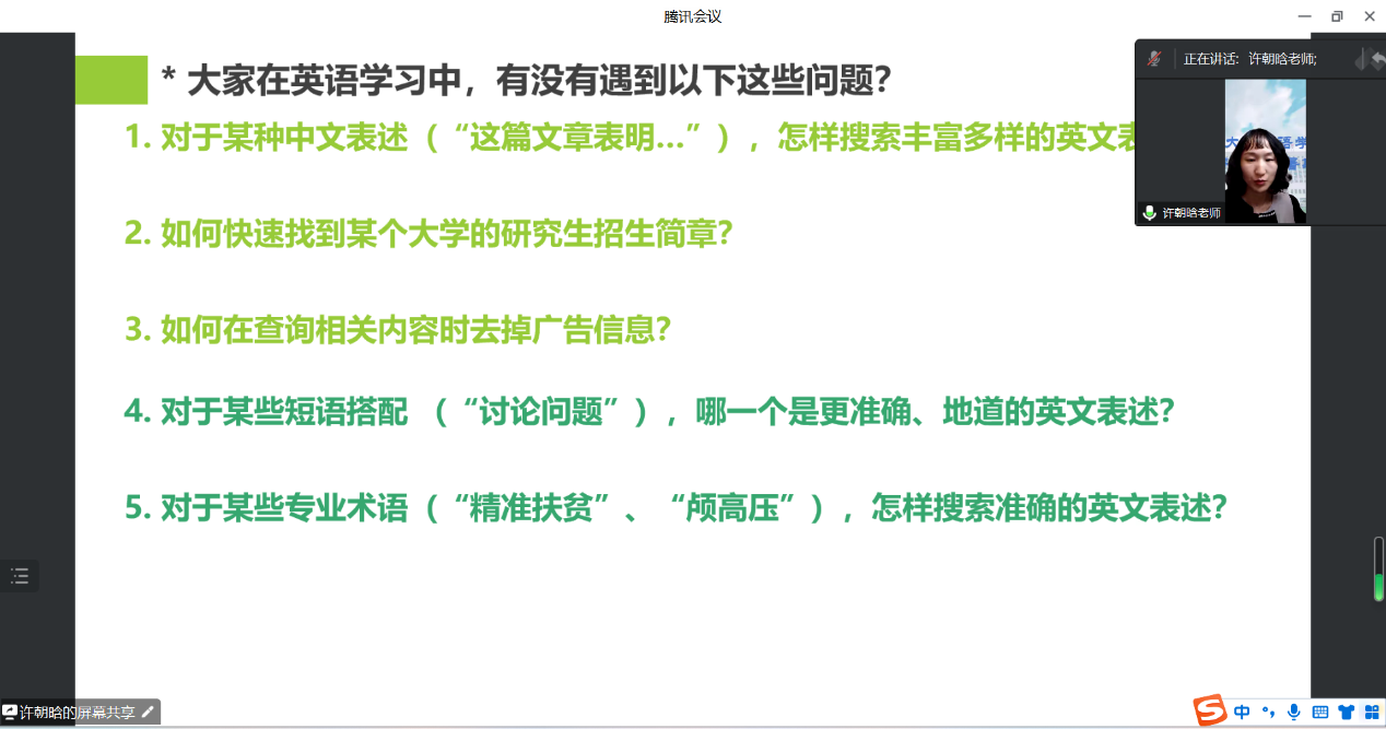 8日下午,许朝晗博士为营员们开展“ChatGPT时代的信息搜索技术与翻译应用”专题讲座。她深入浅出、别开生面地介绍了各类搜索工具及其使用方法,帮助同学们利用现代信息技术提高学习效率,提升学术素养。
