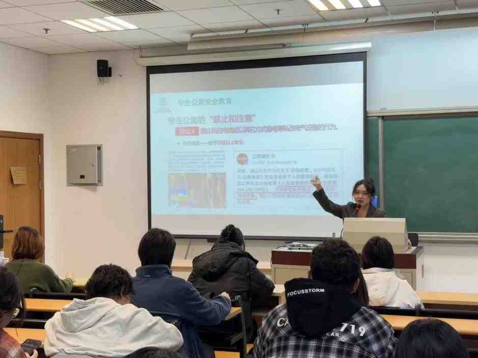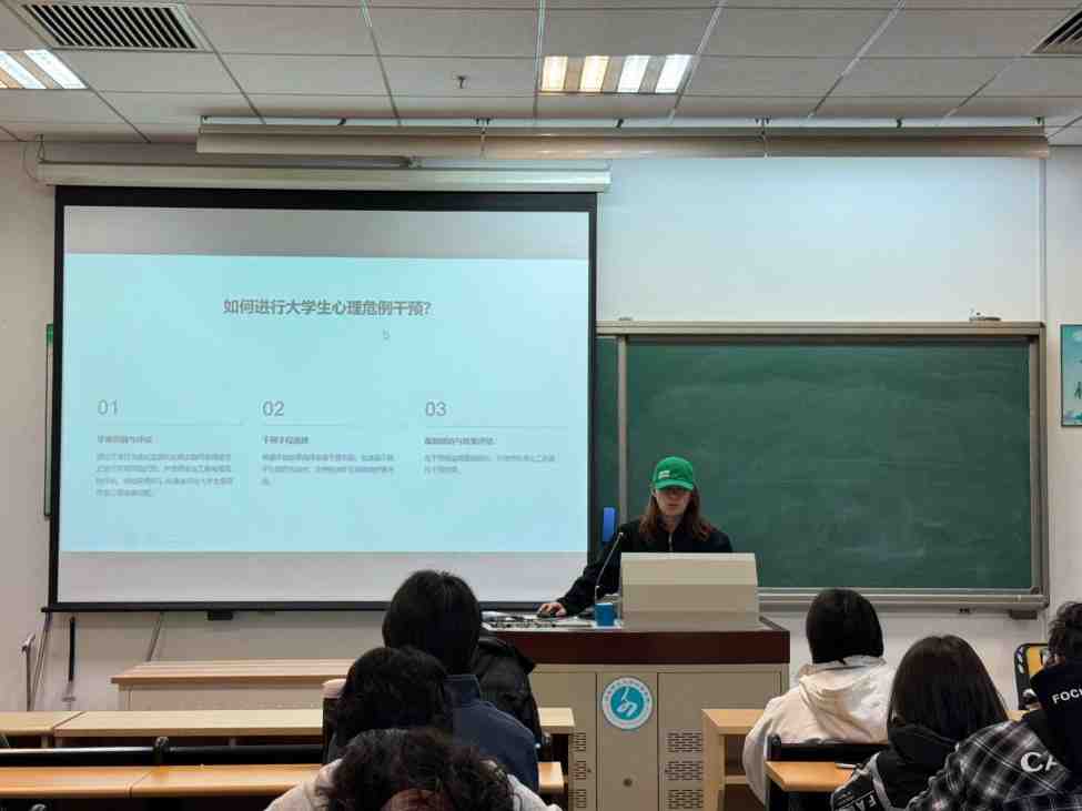 学院二级心理辅导站联络员窦文祎分享了大学生心理危机干预的有关知识,结合实例讲解了识别方法和常见治疗形式,倡导同学们正确认识心理问题,尤其作为宿舍长要发挥学生骨干作用,带领宿舍成员营造有温度的生活环境,促进心理健康和个人成长。