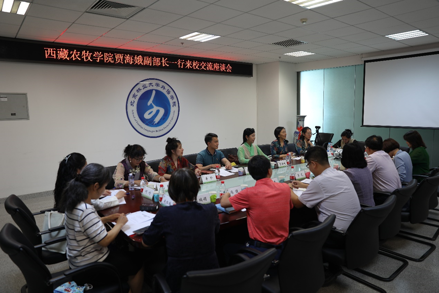 贾海娥介绍了西藏农牧学院的办学情况和公共外语教学的课程设置、课程建设、师资队伍、教学成效等方面情况。她表示,北京林业大学外语学院在外语教学方面取得了丰硕成果、积累了丰富经验,希望通过本次交流研讨,学习借鉴北京林业大学外语学院英语教学的先进经验和优秀成果,推动西藏农牧学院英语教学改革,提升英语教学水平和人才培养质量。