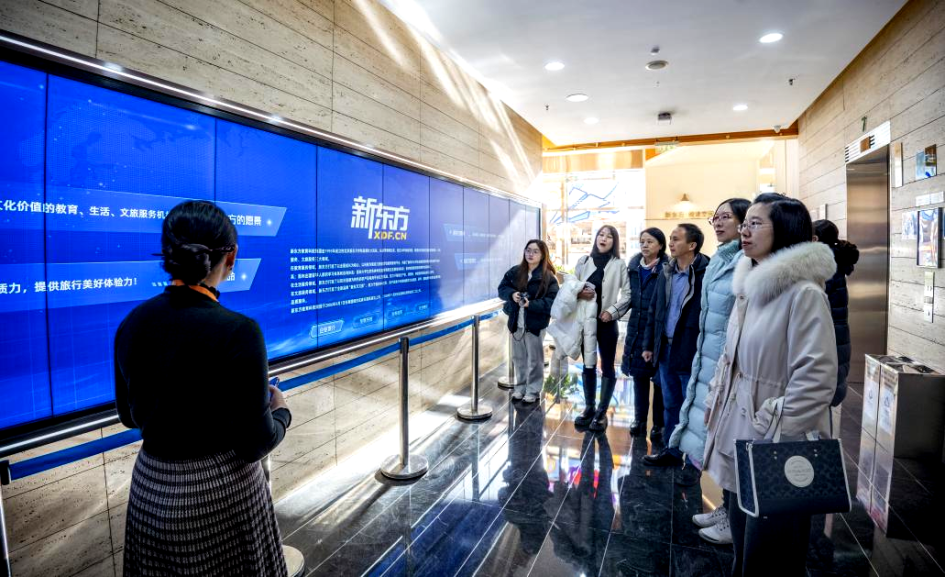 学院一行还参观了“新东方阅读空间”,进一步了解新东方品牌的文化与理念,以及新东方集团的业务体系、发展历程、社会责任等情况。