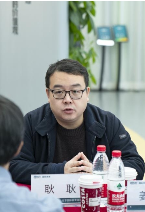 新东方集团助理副总裁、北京国际教育总经理耿耿对外语学院一行的到访表示欢迎。他介绍了新东方国际教育的品牌历史、业务板块和发展方向,并提出了未来校企合作模式的构想。他说,新东方国际教育源于1993年创立的北京新东方国外考试部,多年来致力于服务国际教育的学生和家长需求,帮助学生开拓全球视野、塑造独立人格、探究终身学习、履行社会责任。他还对外语学院近年来19名学生的就业或实习表现给予了肯定和好评。