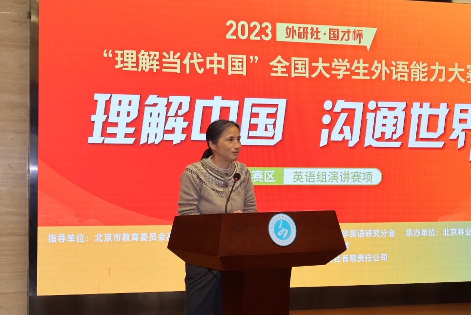 11月4日至5日,2023“外研社·国才杯”“理解当代中国”全国大学生外语能力大赛北京赛区英语组演讲赛项在北京林业大学举行,来自北京地区59所高校的120名中外选手同场竞技。本次比赛由北京市教委高等教育处指导,北京市高教学会大学英语研究分会、北京市高校英语类专业群、外语教学与研究出版社有限责任公司联合主办,北京林业大学外语学院具体承办。