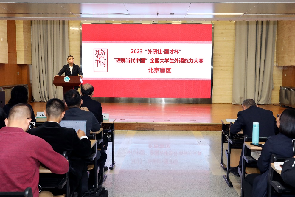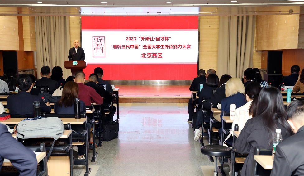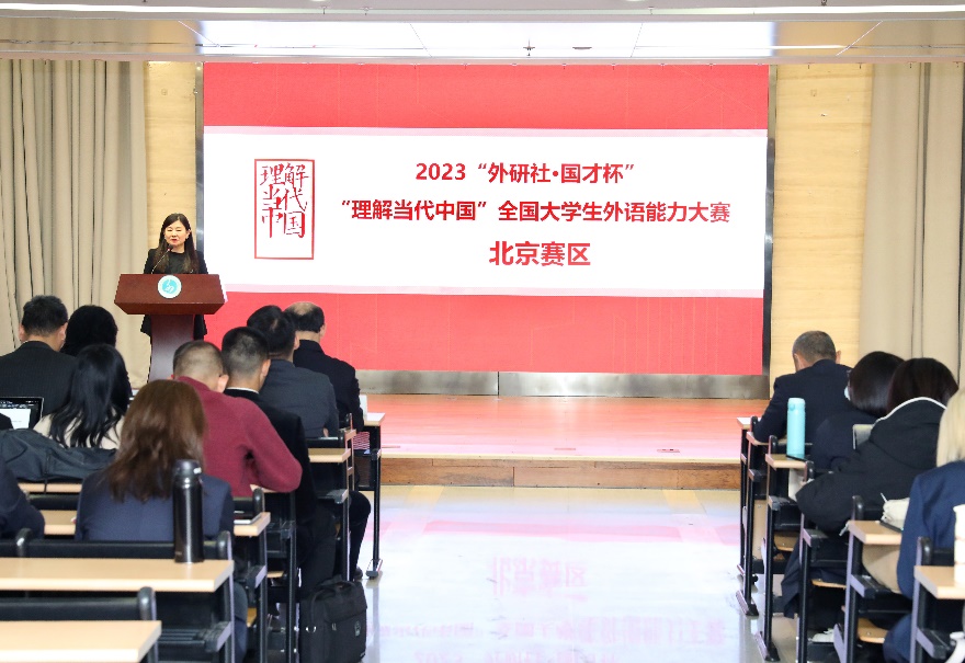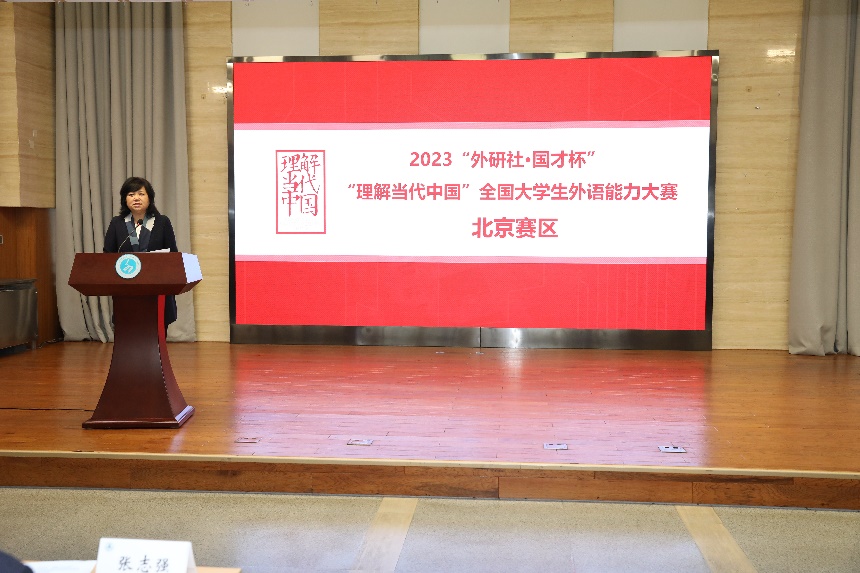 李会钦在致辞中介绍了2023“外研社·国才杯”“理解当代中国”全国大学生外语能力大赛的新亮点,希望通过大赛助力高校打造赛教融合育人模式,培养广大学生跨文化交流能力和意识,为国家选拔“知中国、通世界”的高素质外语人才。她期待所有选手赛场上的精彩表现,并代表北京赛区晋级国赛再创佳绩。
