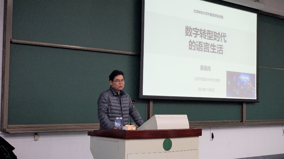 11月8日,外语学院邀请北京外国语大学戴曼纯教授为师生作题为“数字转型时代的语言生活”学术讲座,此系“北林讲堂”暨外语学院系列学术讲座之一。外语学院党委副书记、院长李芝主持讲座,学院师生近三百人聆听讲座。
