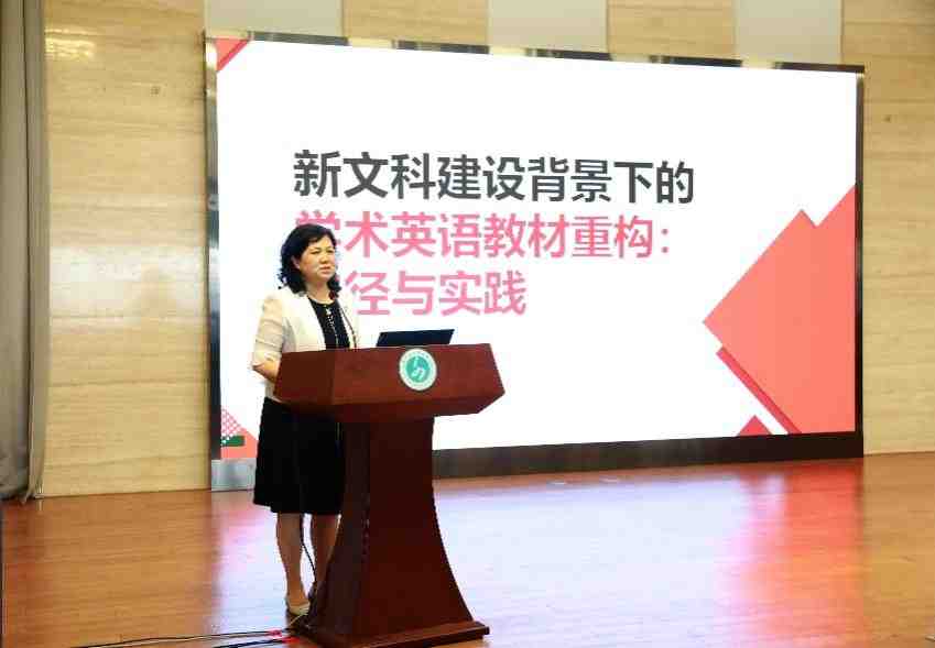 在主旨报告环节,北京市高等教育学会大学英语研究分会理事长、北京大学外国语学院党委书记、教授李淑静以“新文科建设背景下的学术英语教材重构”为题,阐述了新文科建设的内涵与要求,提出外语教育要通过加强“价值引领”“学科交叉”“技术赋能”,重构教学目标与教材体系,着力培养具备跨学科知识和创新思维的国际化复合型人才。