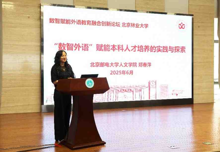 北京邮电大学人文学院主持工作副院长、教授郑春萍以“‘数智外语’赋能本科人才培养的实践与研究”为题,系统介绍了北邮“科技赋能人文、人文蕴养理工”的育人理念,展示了“数智技术+外语教育”深度融合的创新成果。