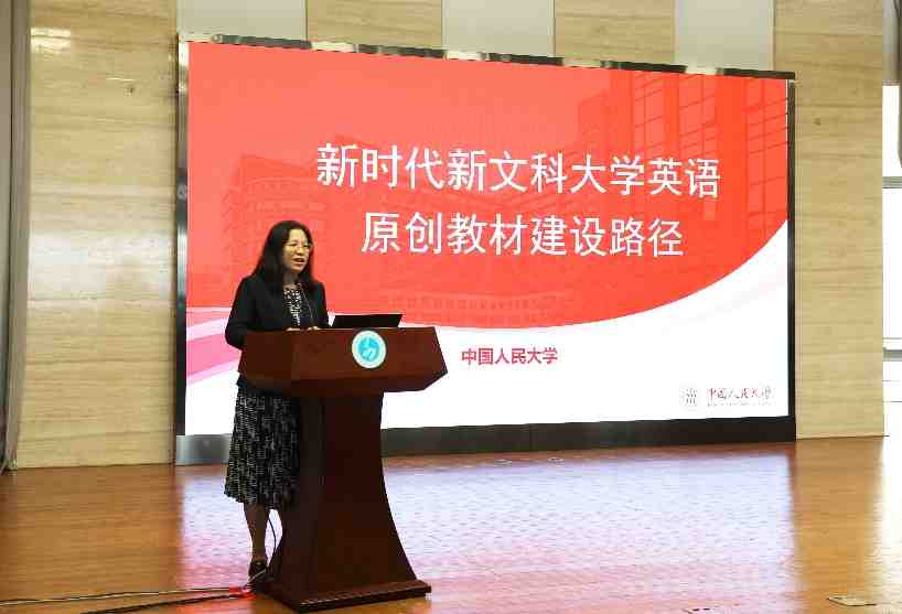 中国人民大学外国语学院副院长、教授田丽丽以“新时代新文科大学英语原创教材建设路径”为题,分享了基于人大校本特色的国际胜任力教学框架,展示了新形态教材在课程思政、跨文化交际能力培养方面的创新实践。