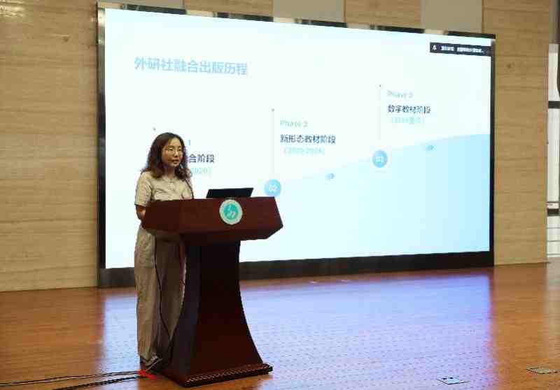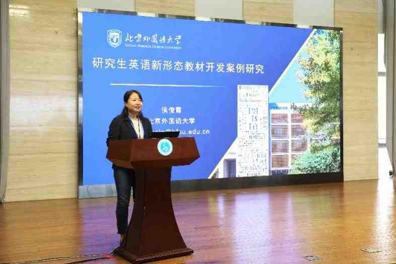 北京外国语大学专用英语学院党总支书记、院长、教授侯俊霞以“研究生英语新形态教材开发案例研究”为题,通过历时两年跟踪研究,剖析了新形态教材开发中“冲突-协商-妥协”的动态过程,提出教材建设需兼顾规范性与创新性的实践策略。