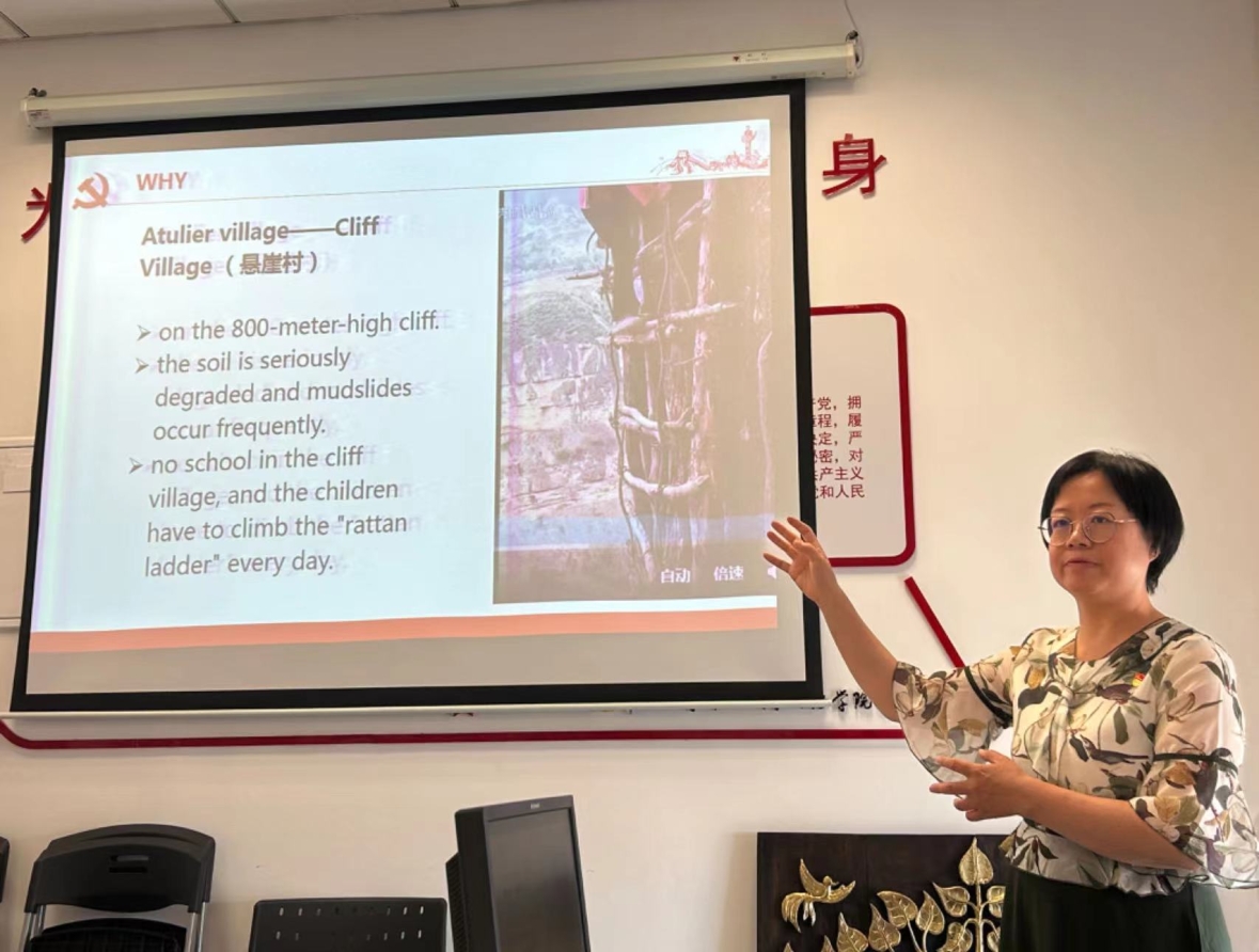 国际交流与合作处副处长兼党支部副书记李倞在发言中指出,作为党员,大家都要站稳人民立场。外语学院老师们要从外语学院的角度,做好文化传播工作、学习AI技术、努力提升科研水平。两个支部的党员都要站好学校立场,共同提升国际胜任力,提高学校的国际化水平。
